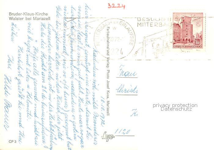 73231340 alte Postkarte Walster Region Bruder-Klaus-Kirche postalisch gelaufen Erhaltung siehe scans [LiesaD40] KatCode: 11390223060210