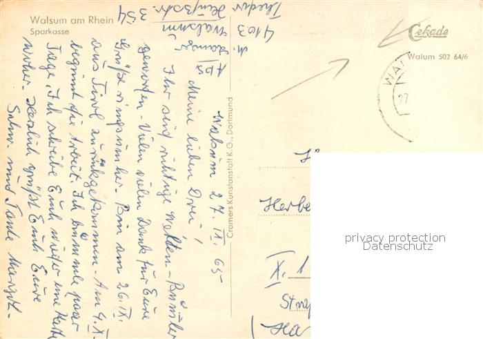 73759097 alte Postkarte Walsum Duisburg Sparkasse postalisch gelaufen Erhaltung siehe scans [WerneD78] KatCode: 11110005112000