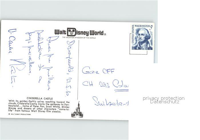 72412594 Walt Disney World Cinderalla Castle Fantasyland postalisch nicht gelaufen Erhaltung siehe scans KatCode: 14140110000000