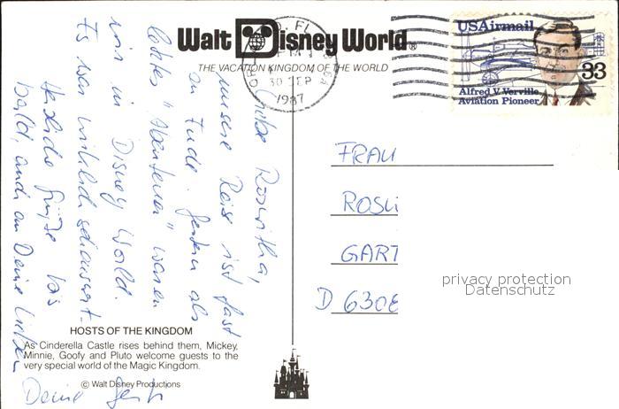 72490352 old postcard Walt Disney World Cinderella Castle Mickey Minnie Goofy Pluto postalisch gelaufen Erhaltung siehe scans KatCode: 14140110000000