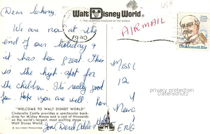 73077775 old postcard Walt Disney World Cinderella Castle postalisch gelaufen Erhaltung siehe scans [PaolaD17] KatCode: 14140110000000