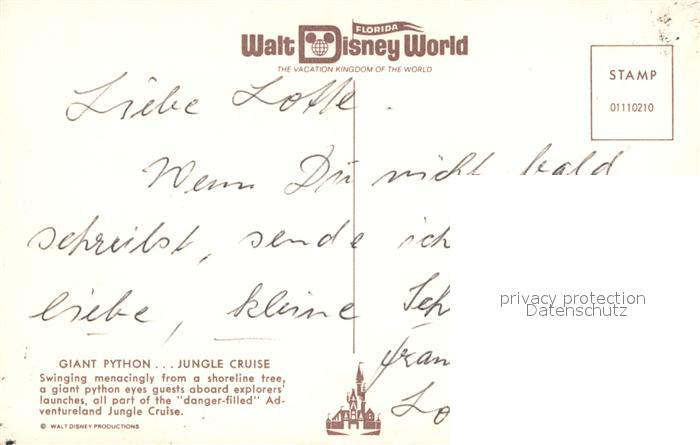 72908442 Walt Disney World Giant Python Jungle Cruise postalisch nicht gelaufen Erhaltung siehe scans [PaolaD17] KatCode: 14140110000000