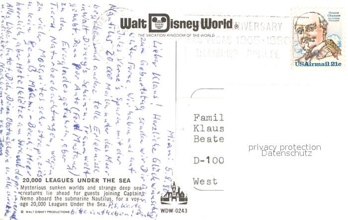 72908424 old postcard Walt Disney World Leagues under the Sea postalisch gelaufen Erhaltung siehe scans [PaolaD17] KatCode: 14140110000000