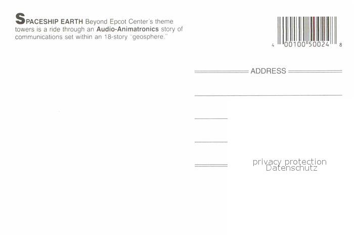 72700167 Walt Disney World Spaceship Earth Epcot Center Audio-Animatronics postalisch nicht gelaufen Erhaltung siehe scans [PaolaD17] KatCode: 14140110000000