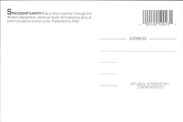 72540117 Walt Disney World Spaceship Earth Geosphere postalisch nicht gelaufen Erhaltung siehe scans [PaolaD17 kt110box] KatCode: 14140110000000