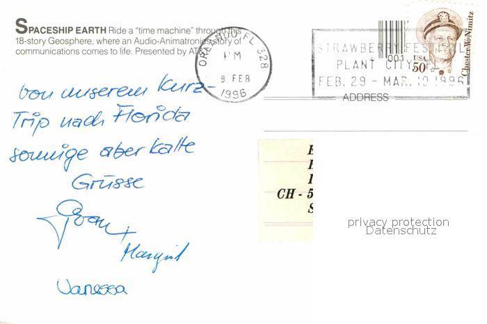 72678249 old postcard Walt Disney World Spaceship Earth Geosphere postalisch gelaufen Erhaltung siehe scans [PaolaD17] KatCode: 14140110000000