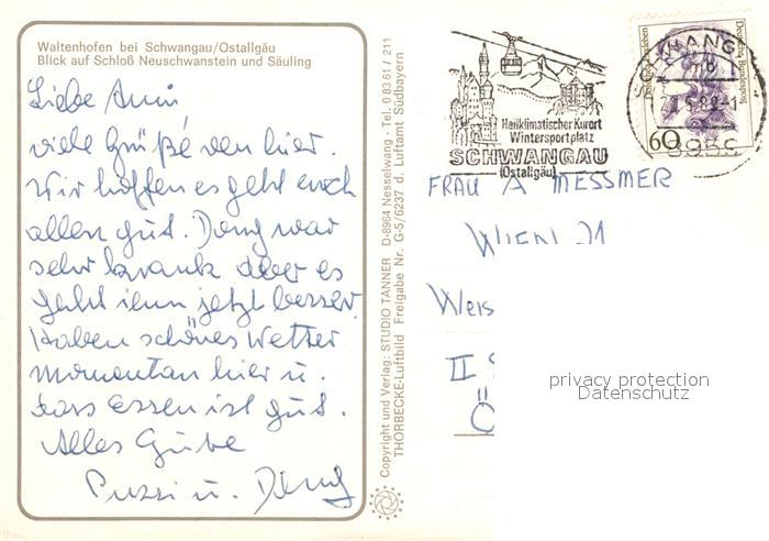 72937287 alte Postkarte Waltenhofen Allgaeu Fliegeraufnahme mit Schloss Neuschwanstein postalisch gelaufen Erhaltung siehe scans [WerneD78] KatCode: 11110009780143