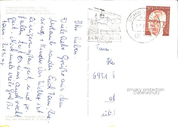 72602586 alte Postkarte Waltenhofen Allgaeu Schwangau mit Forggensee postalisch gelaufen Erhaltung siehe scans [LiesaD40] KatCode: 11110009780143