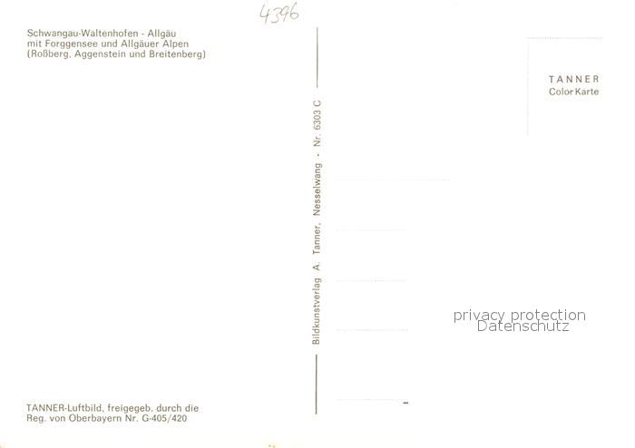 73540880 Waltenhofen Schwangau Fliegeraufnahme mit Forggensee Allgaeuer Alpen Aggenstein und Breitenberg postalisch nicht gelaufen Erhaltung siehe scans [WerneD78] KatCode: 11110009777169