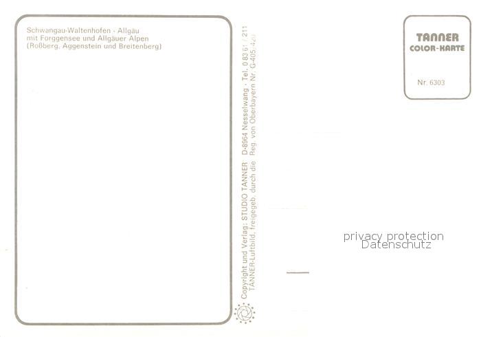 73617105 Waltenhofen Schwangau Forggensee Fliegeraufnahme postalisch nicht gelaufen Erhaltung siehe scans [PaolaD17] KatCode: 11110009777169