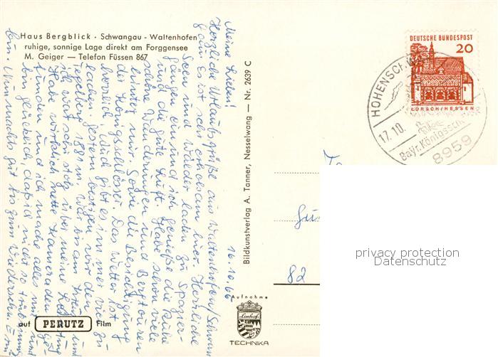 73800902 alte Postkarte Waltenhofen Schwangau Haus Bergblick postalisch gelaufen Erhaltung siehe scans [WerneD78] KatCode: 11110009777169