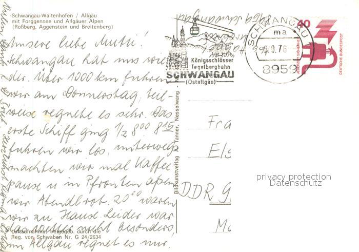 73656348 alte Postkarte Waltenhofen Schwangau mit Forggensee und Allgaeuer Alpen postalisch gelaufen Erhaltung siehe scans [WerneD78] KatCode: 11110009777169