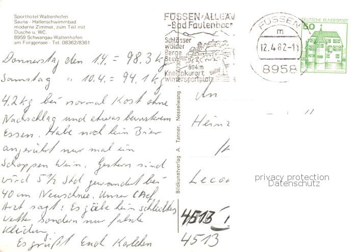 73836516 alte Postkarte Waltenhofen Schwangau Sporthotel Waltenhofen postalisch gelaufen Erhaltung siehe scans [WerneD78] KatCode: 11110009777169