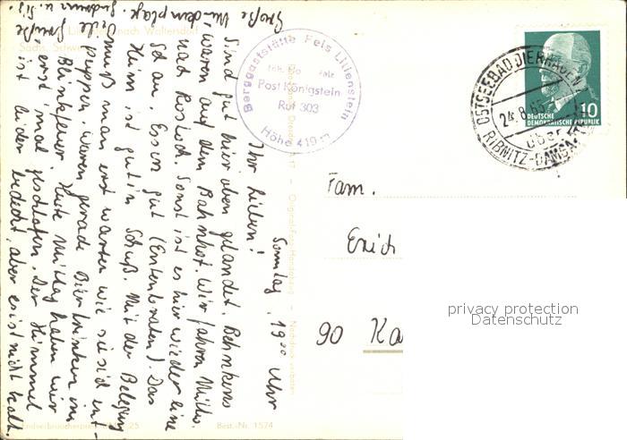 72473917 alte Postkarte Waltersdorf Bad Schandau Blick vom Lilienstein postalisch gelaufen Erhaltung siehe scans KatCode: 11110014287020