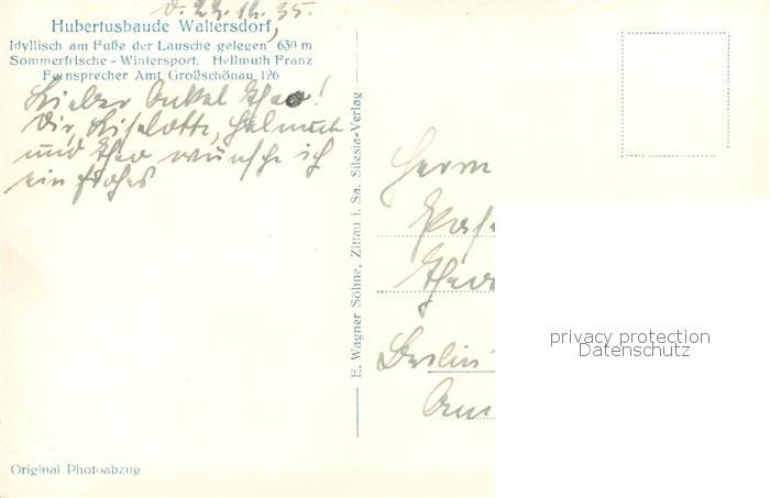 73820174 alte Postkarte Waltersdorf Bad Schandau Hubertusbaude vom Lauschehang postalisch gelaufen Erhaltung siehe scans [WerneD78] KatCode: 11110014287020