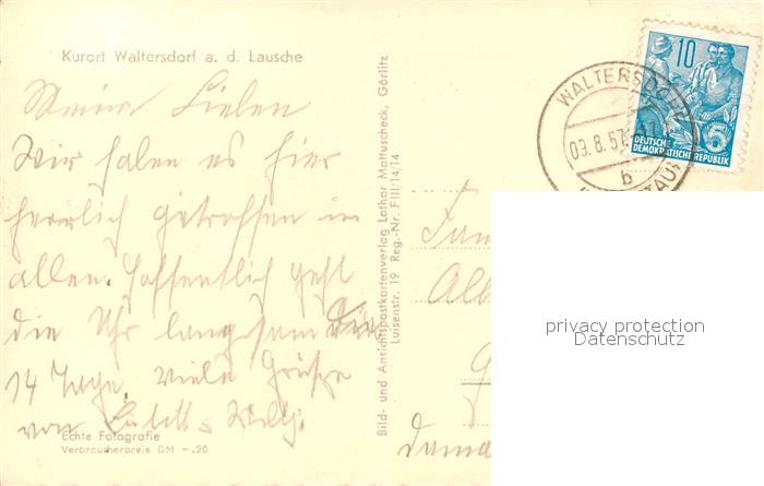 73045455 alte Postkarte Waltersdorf Zittau postalisch gelaufen Erhaltung siehe scans [PaolaD17] KatCode: 11110014286120