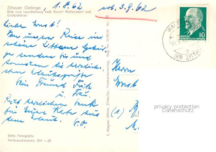 73606686 alte Postkarte Waltersdorf Zittau Blick vom Lauschehang nach Grossschoenau postalisch gelaufen Erhaltung siehe scans [WerneD78] KatCode: 11110014286120