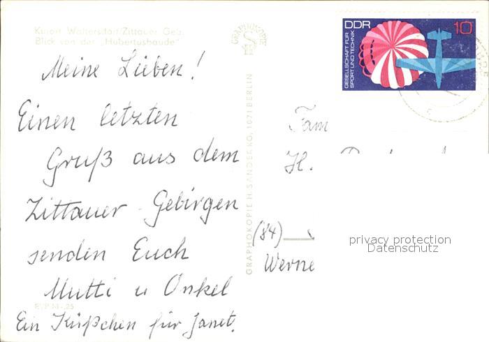 72381922 alte Postkarte Waltersdorf Zittau Blick von der Hubertusbaude postalisch gelaufen Erhaltung siehe scans KatCode: 11110014286120