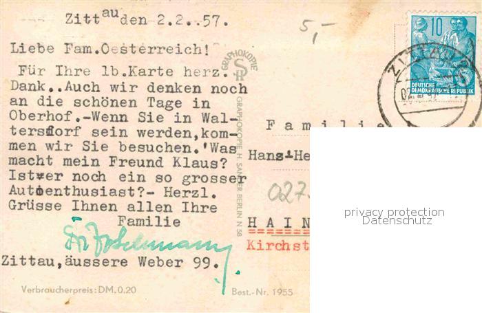 72632770 alte Postkarte Waltersdorf Zittau Hubertusbaude Lausche Neu Sorge Grenzbaude postalisch gelaufen Erhaltung siehe scans [FriedD77] KatCode: 11110014286120