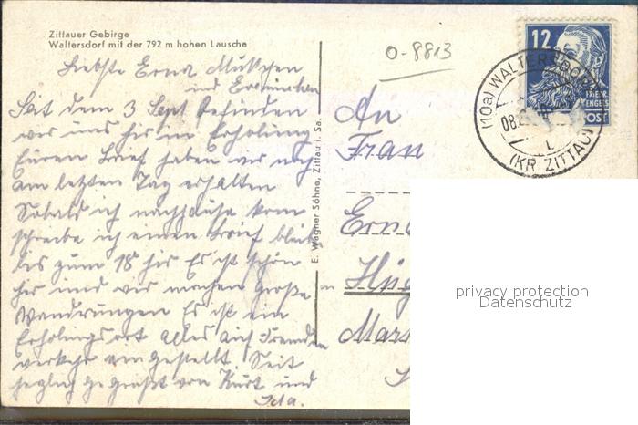 42359222 alte Postkarte Waltersdorf Zittau Lausche postalisch gelaufen Erhaltung siehe scans KatCode: 11110014286120