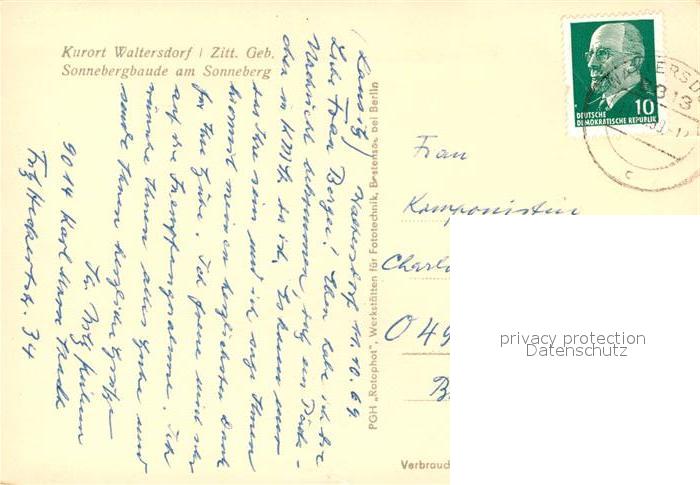 73072276 alte Postkarte Waltersdorf Zittau Sonnebergbaude am Sonneberg Kurort Zittauer Gebirge postalisch gelaufen Erhaltung siehe scans [FriedD77] KatCode: 11110014286120