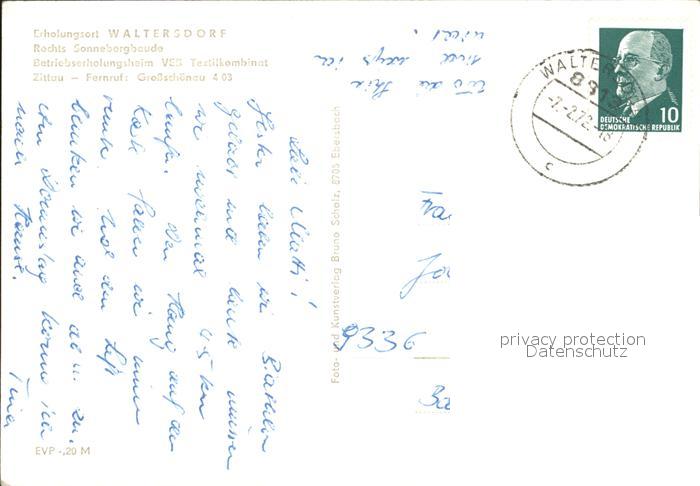 71990707 alte Postkarte Waltersdorf Zittau Sonnenbergbaude Sessellift Erholungsheim VEB Textilkombinat postalisch gelaufen Erhaltung siehe scans KatCode: 11110014286120