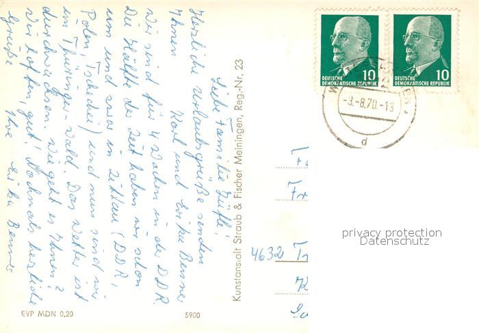 73303235 alte Postkarte Waltershausen Gotha Markt Rathaus Nikolaustor Kraeuterwiese Schloss Tenneberg Badesee postalisch gelaufen Erhaltung siehe scans [FriedD77] KatCode: 11110016067072