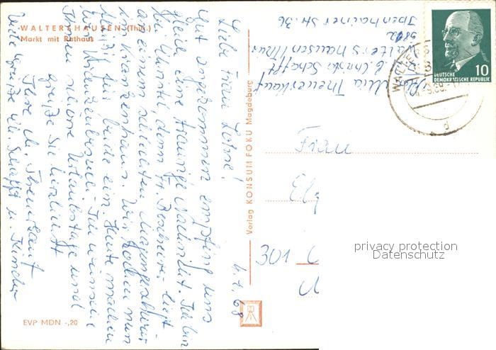 72047772 alte Postkarte Waltershausen Gotha Markt Rathaus postalisch gelaufen Erhaltung siehe scans KatCode: 11110016067072