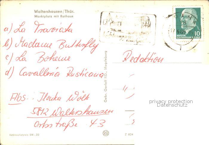 71929922 alte Postkarte Waltershausen Gotha Marktplatz mit Rathaus postalisch gelaufen Erhaltung siehe scans KatCode: 11110016067072