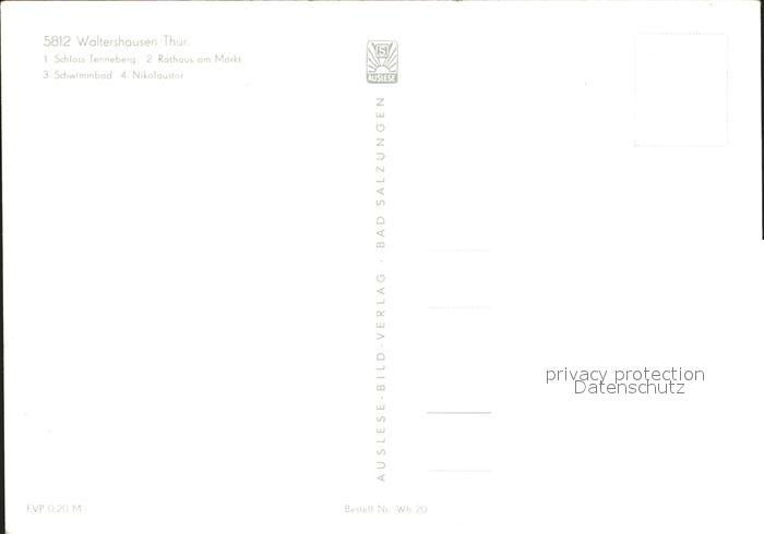72133113 Waltershausen Gotha Schloss Tenneberg Rathaus Markt Nikolaustor postalisch nicht gelaufen Erhaltung siehe scans KatCode: 11110016067072