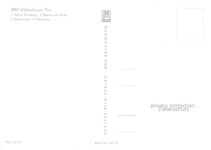 73015296 Waltershausen Gotha Schloss Tenneberg Rathaus Markt Schwimmbad Nikolaustor postalisch nicht gelaufen Erhaltung siehe scans [WerneD78] KatCode: 11110016067072