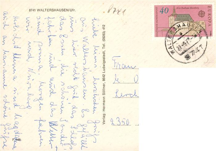 73915052 alte Postkarte Waltershausen Unterfranken Panorama Kirche Schwimmbad postalisch gelaufen Erhaltung siehe scans [FriedD77] KatCode: 11110009673160