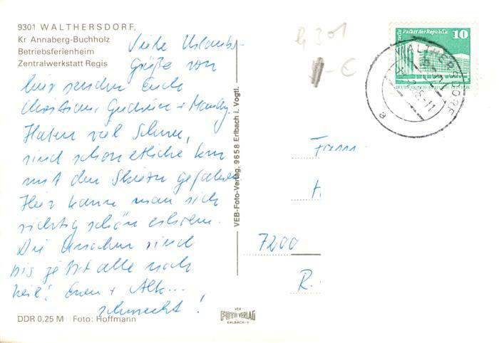 73908275 alte Postkarte Walthersdorf Erzgebirge Betriebsferienheim Zentralwerkstatt Regis Speisesaal Parkanlagen postalisch gelaufen Erhaltung siehe scans [FriedD77] KatCode: 11110014171050