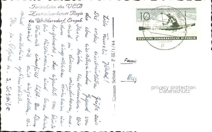 alte Postkarte Walthersdorf Erzgebirge Ferienheim des VEB Zentralwerkstatt Regis Winterpanorama postalisch gelaufen Erhaltung siehe scans