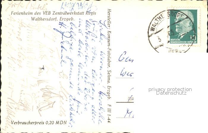 72029703 alte Postkarte Walthersdorf Erzgebirge Ferienheim des VEB Zentralwerkstatt Regis postalisch gelaufen Erhaltung siehe scans KatCode: 11110014171050
