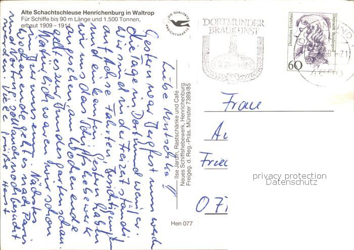 72066220 alte Postkarte Waltrop Recklinghausen NRW Alte Schachtschleuse Henrichenburg Fliegeraufnahme postalisch gelaufen Erhaltung siehe scans KatCode: 11110005562036