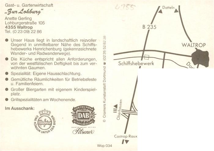 73912944 Waltrop Recklinghausen NRW Gast und Gartenwirtschaft Zur Lohburg Gastraeume postalisch nicht gelaufen Werbekarte (keine Postkarte) Erhaltung siehe scans [WerneD78] Werbekarte (keine Postkarte) Wern Katcode 11110005562036