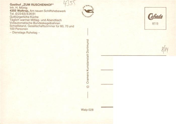 73912610 Waltrop Recklinghausen NRW Gasthof Zum Ruschenhof Gastraeume Kegelbahn Tiergehege postalisch nicht gelaufen Erhaltung siehe scans [WerneD78] Wern Katcode 11110005562036