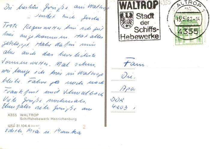 73933680 Waltrop Recklinghausen NRW Schiffshebewerk Henrichenburg postalisch gelaufen Erhaltung siehe scans [FriedD77] alte Postkarte Frie Katcode 11110005562036