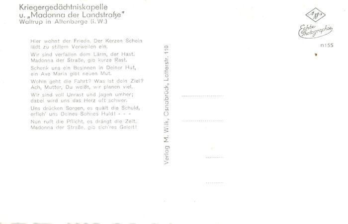 73914725 Waltrup Westfalen Kriegergedaechtniskapelle und Madonna der Landstrasse postalisch nicht gelaufen Erhaltung siehe scans [FriedD77] KatCode: 11110005566004