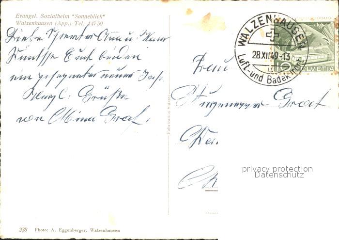 11640689 alte Postkarte Walzenhausen AR Evangelisches Sozialheim Sonneblick postalisch gelaufen Erhaltung siehe scans KatCode: 11470020070584