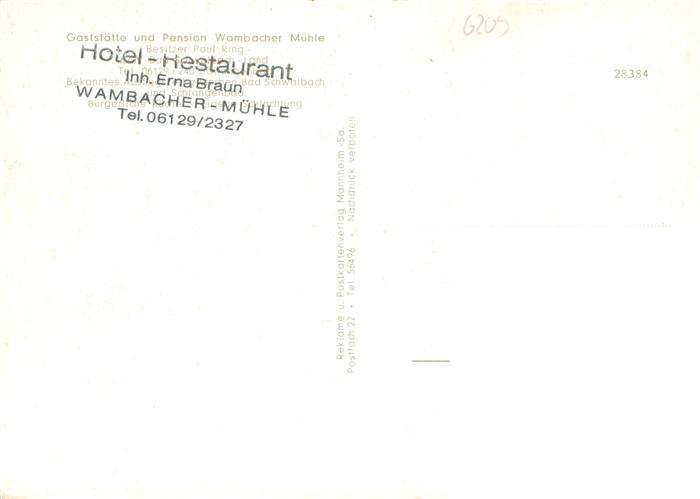 73936592 Wambach Bad Schwalbach Taunus Wambacher Muehle Pension Waldruhe postalisch nicht gelaufen Erhaltung siehe scans [FriedD77] KatCode: 11110006439014