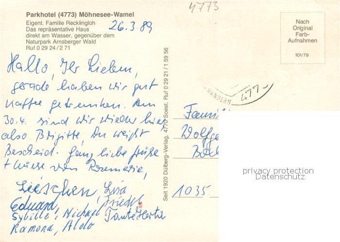 73780562 Wamel Moehnesee Parkhotel Speisesaal Treppenaufgang Gaestezimmer postalisch nicht gelaufen Erhaltung siehe scans [WerneD78] KatCode: 11110005974032