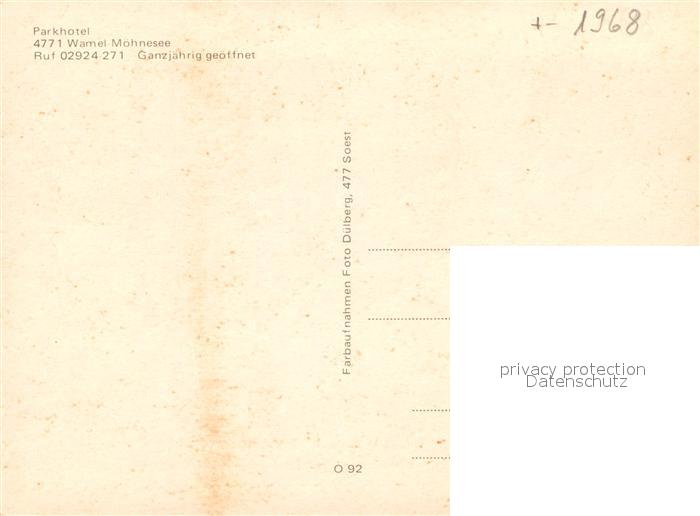 72932244 Wamel Moehnesee Parkhotel postalisch nicht gelaufen Erhaltung siehe scans [LiesaD40] KatCode: 11110005974032