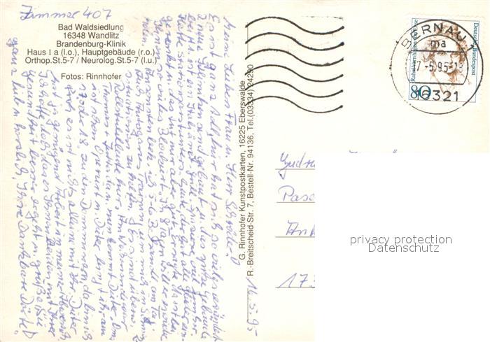 73734671 alte Postkarte Wandlitz Bad Waldsiedlung Brandenburg-Klinik postalisch gelaufen Erhaltung siehe scans [LiesaD40] KatCode: 11110012060269
