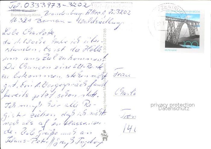 71915272 alte Postkarte Wandlitz Brandenburg Klinik postalisch gelaufen KatCode: 11110012060269