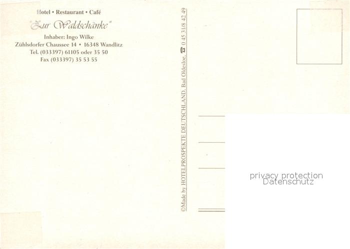73662835 Wandlitz Hotel Restaurant Caf? zur Waldschenke postalisch nicht gelaufen Erhaltung siehe scans [LiesaD40] KatCode: 11110012060269