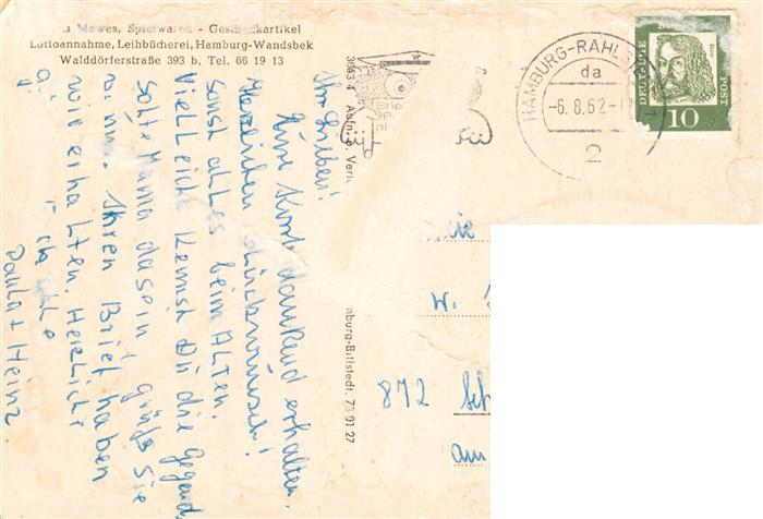 73876522 alte Postkarte Wandsbek Hamburg Ladenstrasse Am Hohen Hause Walddoerferstrasse Nordstrandstrasse Am Hohen Hause postalisch gelaufen Erhaltung siehe scans [FriedD77] KatCode: 11110002000000