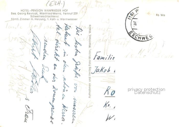 73686966 alte Postkarte Wanfried Hotel Pension Wanfrieder Hof Restaurant Panorama Sommerfrische postalisch gelaufen Erhaltung siehe scans [FriedD77] KatCode: 11110006636013