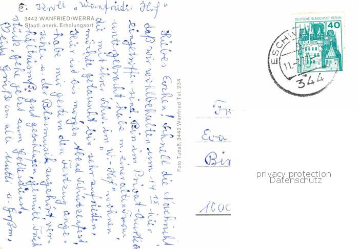 72821361 alte Postkarte Wanfried Panorama Alte Haeuser Fachwerkhaeuser Relief Wappen postalisch gelaufen Erhaltung siehe scans [FriedD77] KatCode: 11110006636013